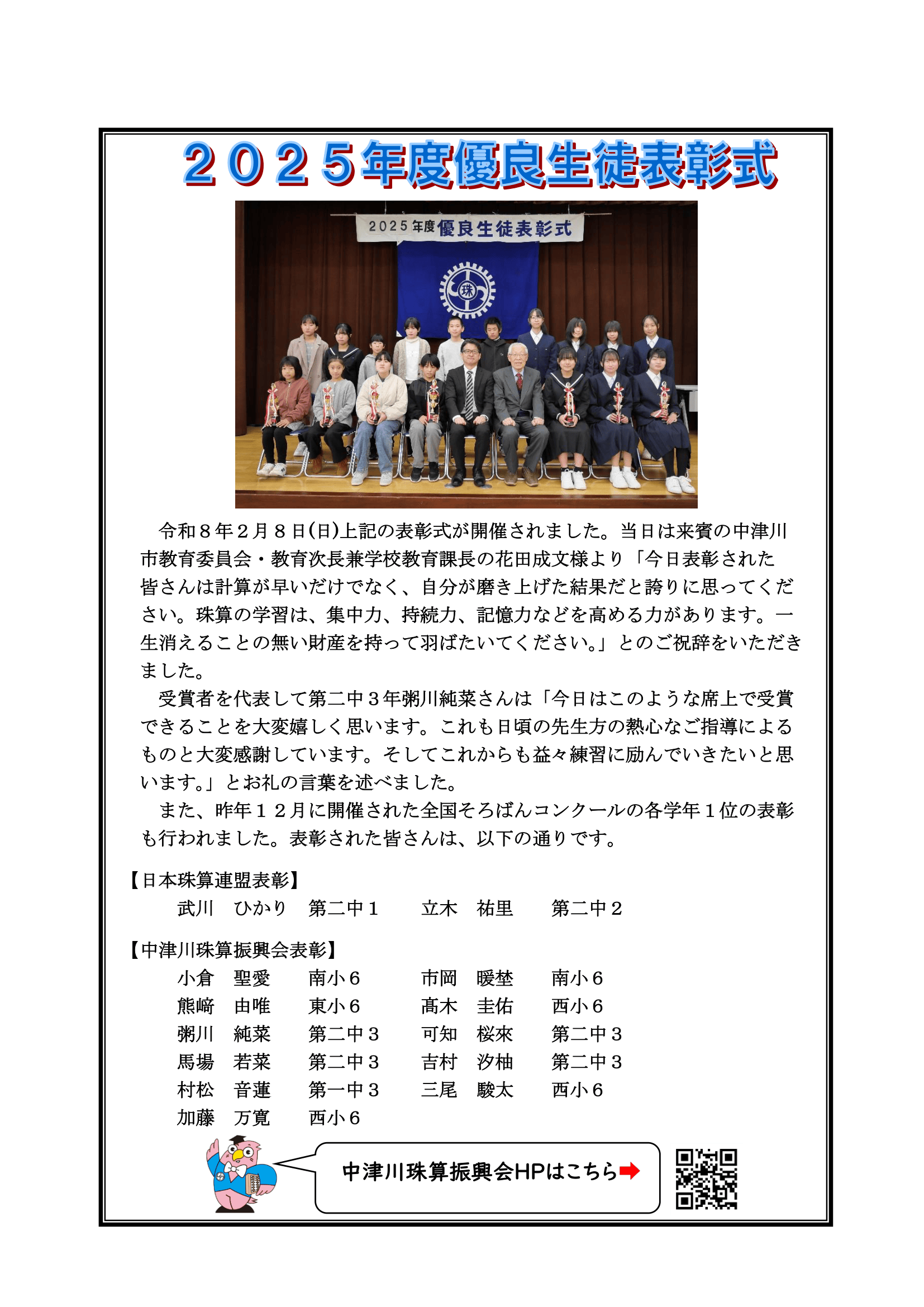 本年度も、本珠算振興会は、「そろばん」の指導・学習を通して社会に貢献してまいりたいと存じますので、変わらぬご理解とご協力をお願い申し上げましてご挨拶といたします。